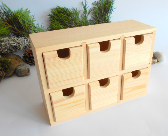 Wooden desk organizer- box with drawers- Keepsake Jewelry Box- Apothecary Cabinet- Desktop Organizer- box for herbs- Help us plant 1 Tree